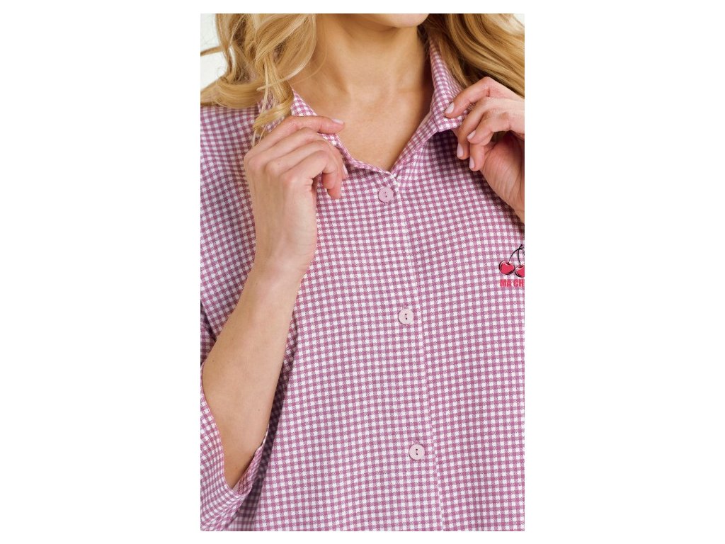 Noční košile Jolie je kombinací klasického střihu a pohodlí. Je vyrobena ze 100% přírodní, měkké bavlny a je ideální pro každé roční období. Model má rukávy ve 3/4 délce, elegantní límeček a praktické zapínání na knoflíky po celé délce. Délka košile sahá ke kolenům, což zajišťuje pohodlí a volnost pohybu. Perfektní volba pro ženy, které ocení styl a pohodlí v jednom.