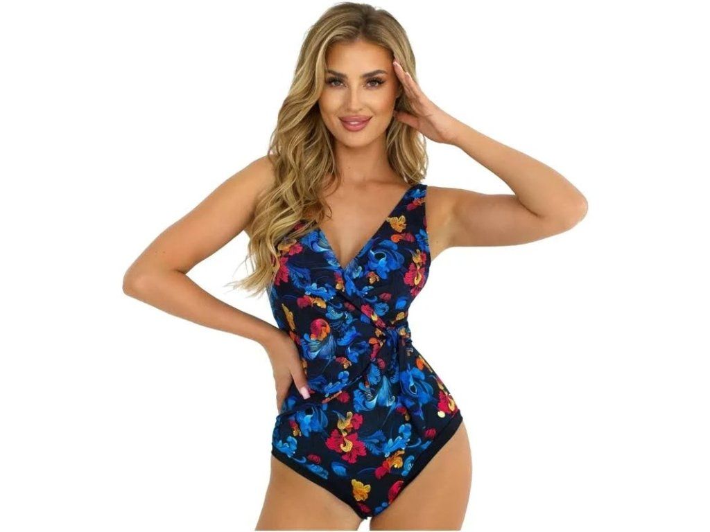 Elegantní jednodílné plavky s překládaným efektem krásně tvarují postavu a zvýrazní dekolt. Příjemný, pružný materiál zajišťuje pohodlí i při celodenním nošení. Ideální volba pro ženy, které chtějí vypadat stylově a cítit se sebevědomě.