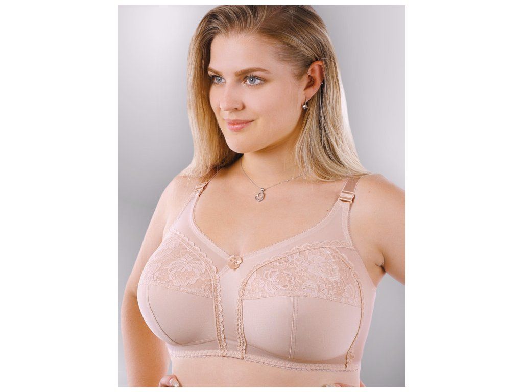 Klasická nevyztužená zmenšovací podprsenka bez kostic, vhodná i pro větší poprsí. Střih je uzavřený, proto prsa krásně podrží a navíc zpevní. Košíčky jsou pro větší pohodlí podloženy bavlnou. Boční materiál je pevnějšího rázu, aby ulevil ramenům. Ramínka se u větších velikostí rozšiřují. Zapínání u menších velikostí na 2 háčky s možností 3 poloh, u větších velikostí se háčky rozšiřují na 3 řady s možností 3 poloh.