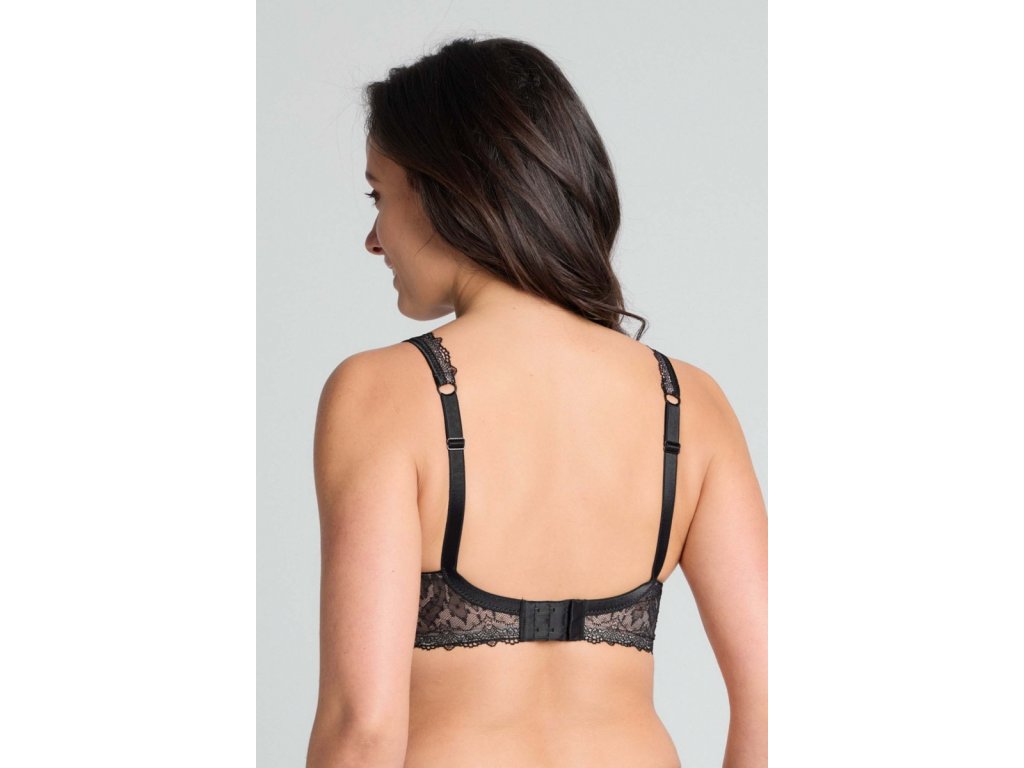 Černá podprsenka udrží vaše poprsí tam, kde má být. Vytvoří svůdný dekolt a zajistí vám komfort po celý den. Obvod a ramínka zaujmou růžovým podložením a jemnou krajkou. Pořiďte si podprsenku z funkčního úpletu s vysokým podílem elastanu. Vhodná pro každou příležitost.