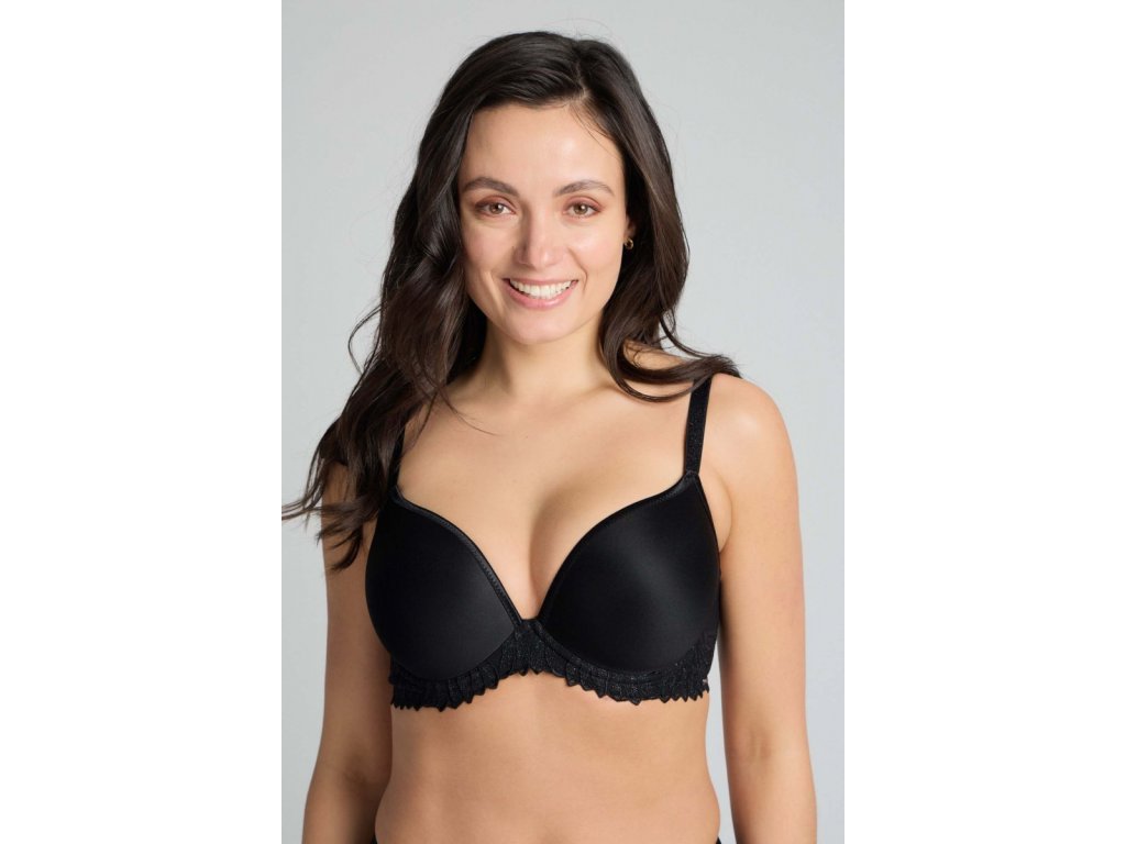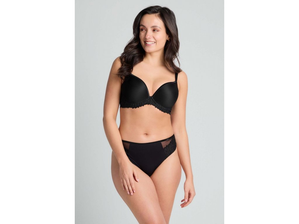 Černá podprsenka s efektní výšivkou zajistí pohodlí po celý den. Pevný obvod prsa krásně pozvedne a zafixuje. Tence vyztužená podprsenka s kosticemi poskytne spolehlivou oporu a přizpůsobí se vašim křivkám. Pořiďte si k podprsence i klasické kalhotky nebo brazilky a získejte kompletní set.